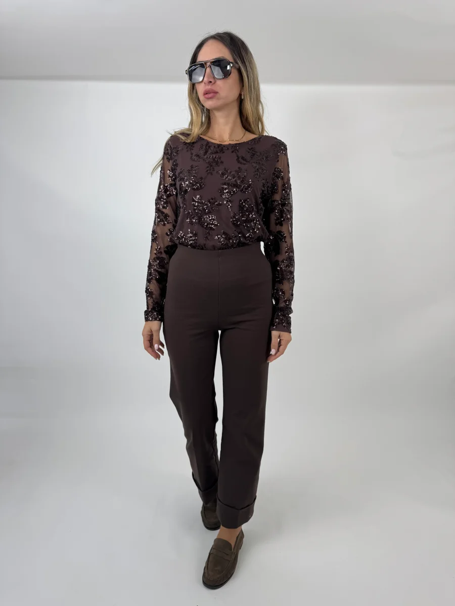 Pantalone vita alta, tessuto elasticizzato, 7/8 65% viscosa 30% nylon 5% elastico MADE IN ITALY