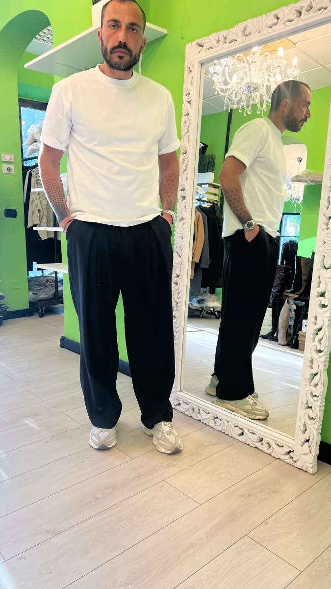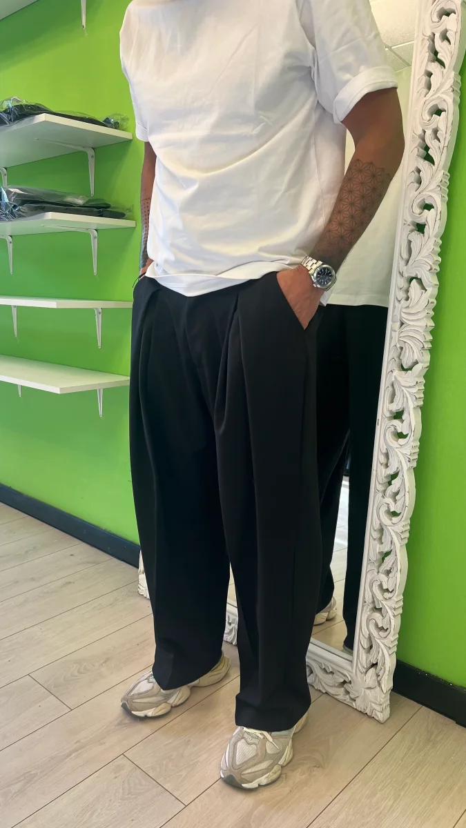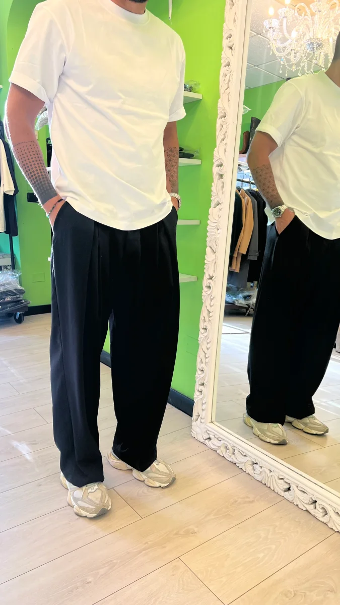 Pantalone nero largo con pence