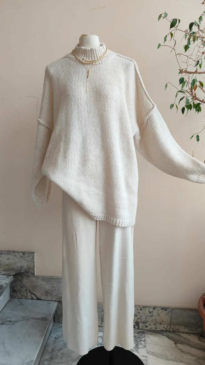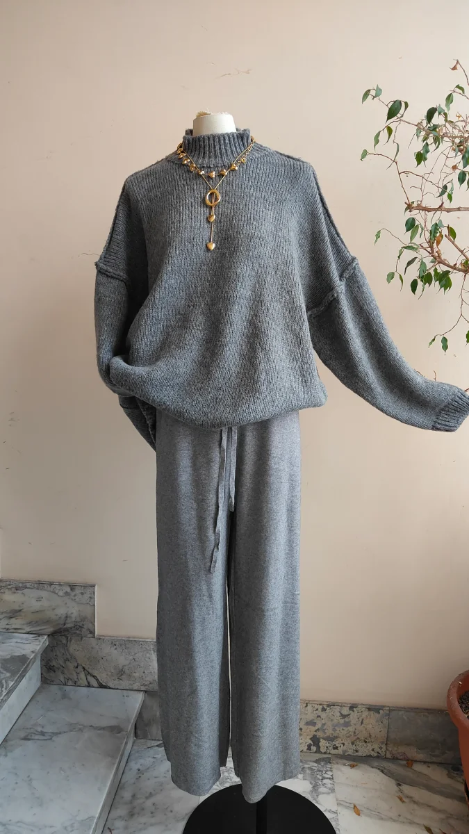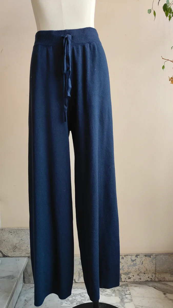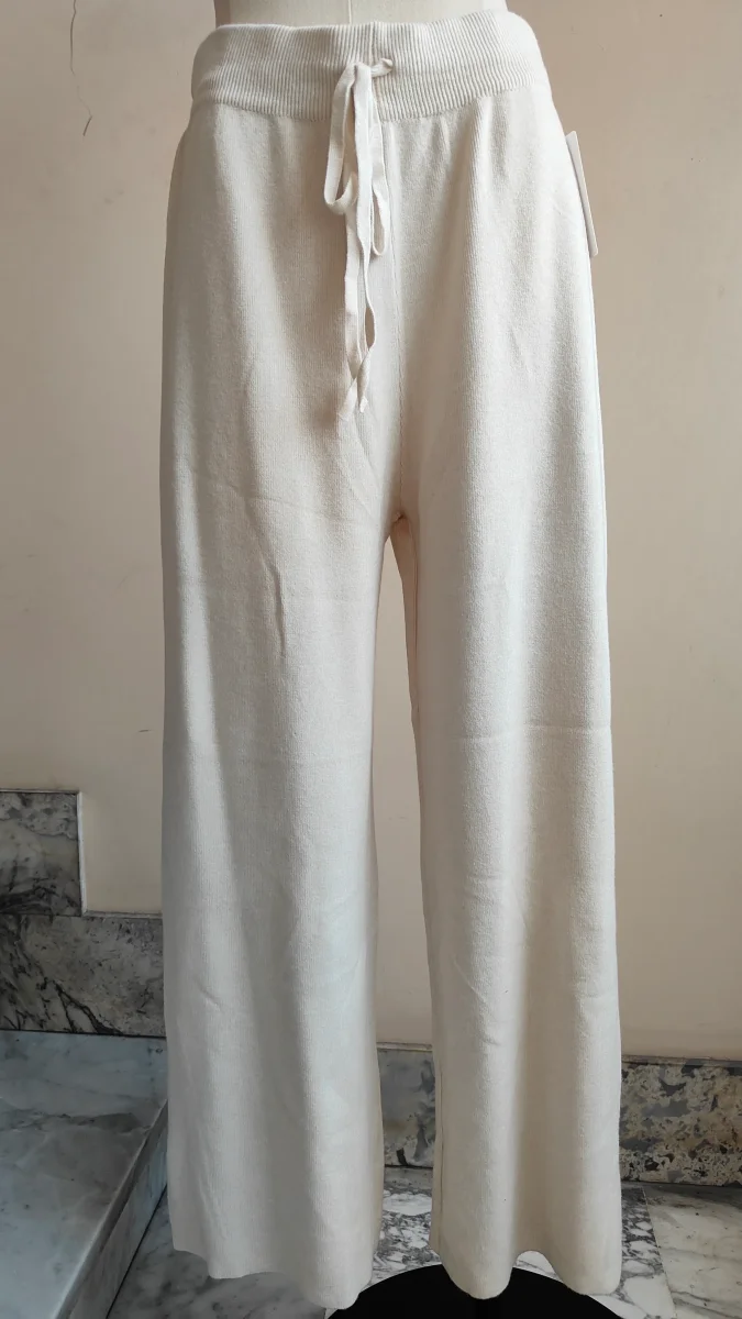 Pantalone in maglia dal fit ampio e rilassato, caratterizzato da una vita alta con coulisse regolabile. Realizzato in un tessuto morbido e piacevole sulla pelle, รจ perfetto per creare look minimal e confortevoli da giorno o da casa. Si abbina facilmente a pullover e camicie oversize per unโeleganza disinvolta.