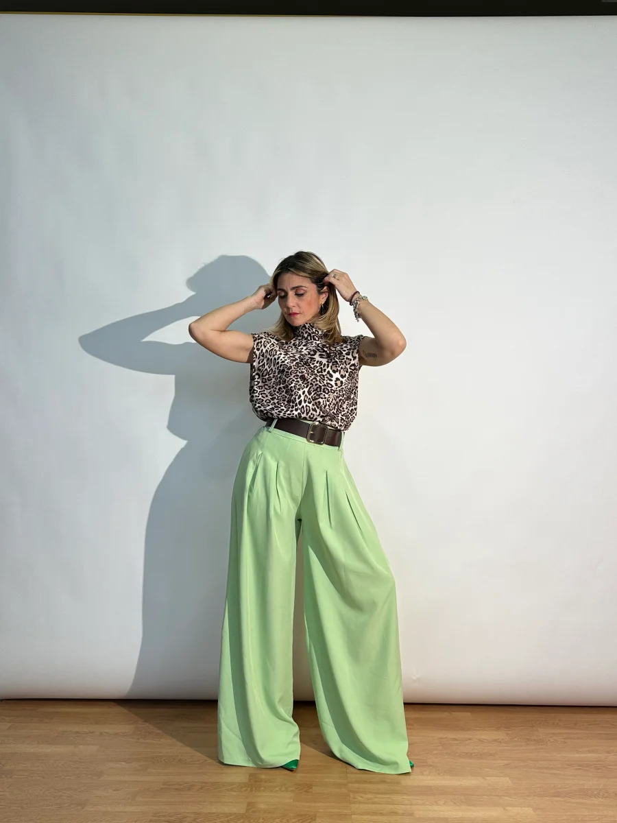 Con i Pantaloni Cindy, la comoditร e l’eleganza si uniscono in un unico capo. La banda elastica in vita e la cintura in similpelle con fibbia dorata offrono un comfort senza pari, mentre il taglio palazzo dona un’aria di eleganza e raffinatezza. Il top del comfort e dello stile.