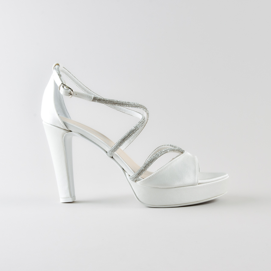 Niki Corti: Sandali da sposa artigianali fatte a mano 100% Made in Italy. Colore: Avorio Materiale: Satin con dettagli in tube cry Tacco: 10cm con plateau Stile: Da sposa, elegante e stabile Made in Italy Scarpa realizzabile su ordinazione. Anche in altri Materiali. Questo articolo verrร prodotto in 20/30 giorni lavorativi.