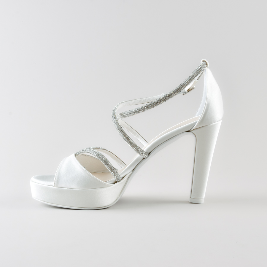 Le Sandalo Chantall di NIKI CORTI sono perfette per la sposa che cerca un sandalo elegante, brillante e comodo. Con il loro design raffinato in satin avorio, i dettagli luminosi in tube cry e il tacco bilanciato da plateau, queste scarpe rappresentano la scelta ideale per un look impeccabile e una camminata sicura nel giorno piรน importante della tua vita.