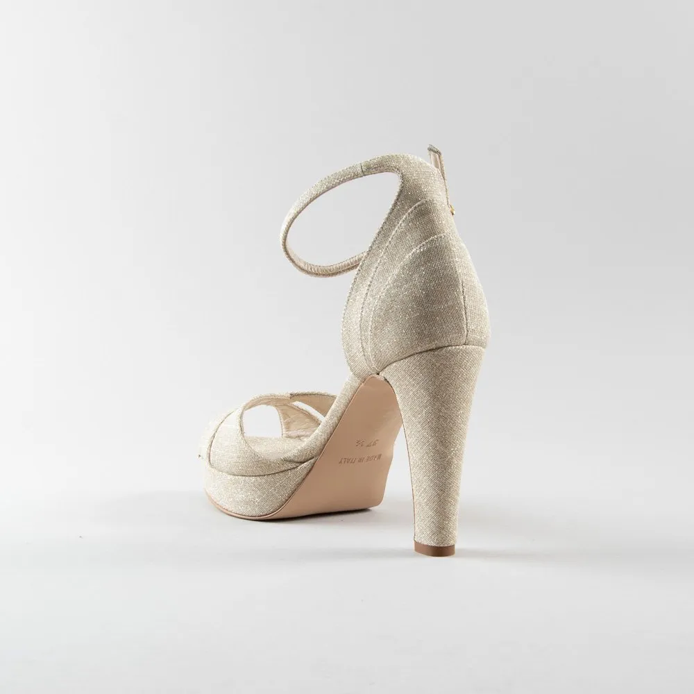 Scarpa su ordinazione. Questo articolo verrร prodotto in 20/30 giorni lavorativi. Scarpe platino in galassia platino, comode ed eleganti. Niki Corti: Sandali da cerimonia artigianali fatte a mano 100% Made in Italy.