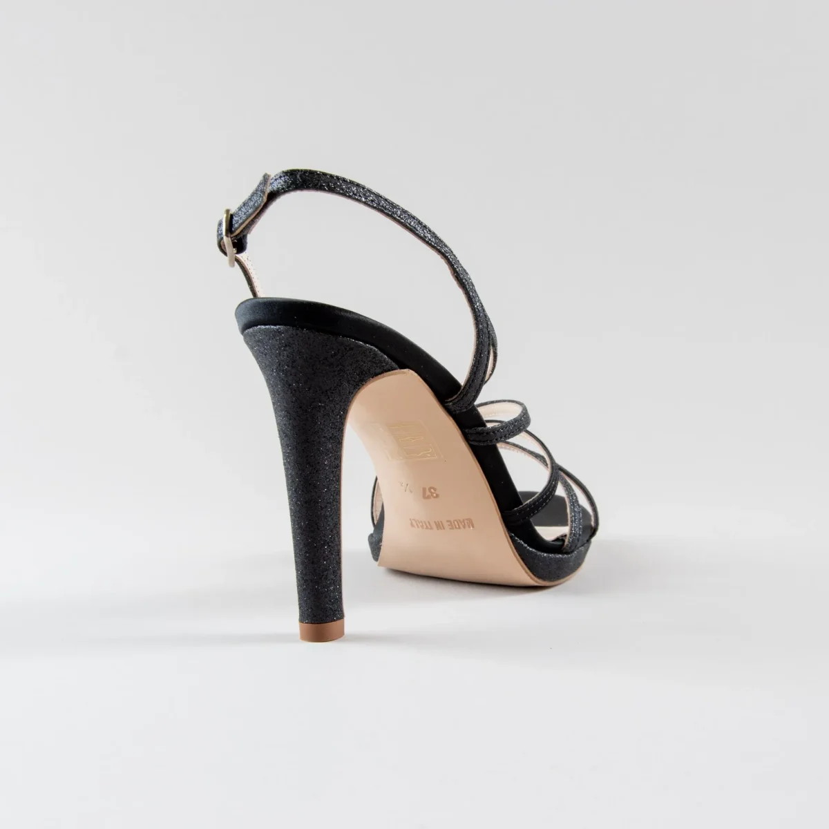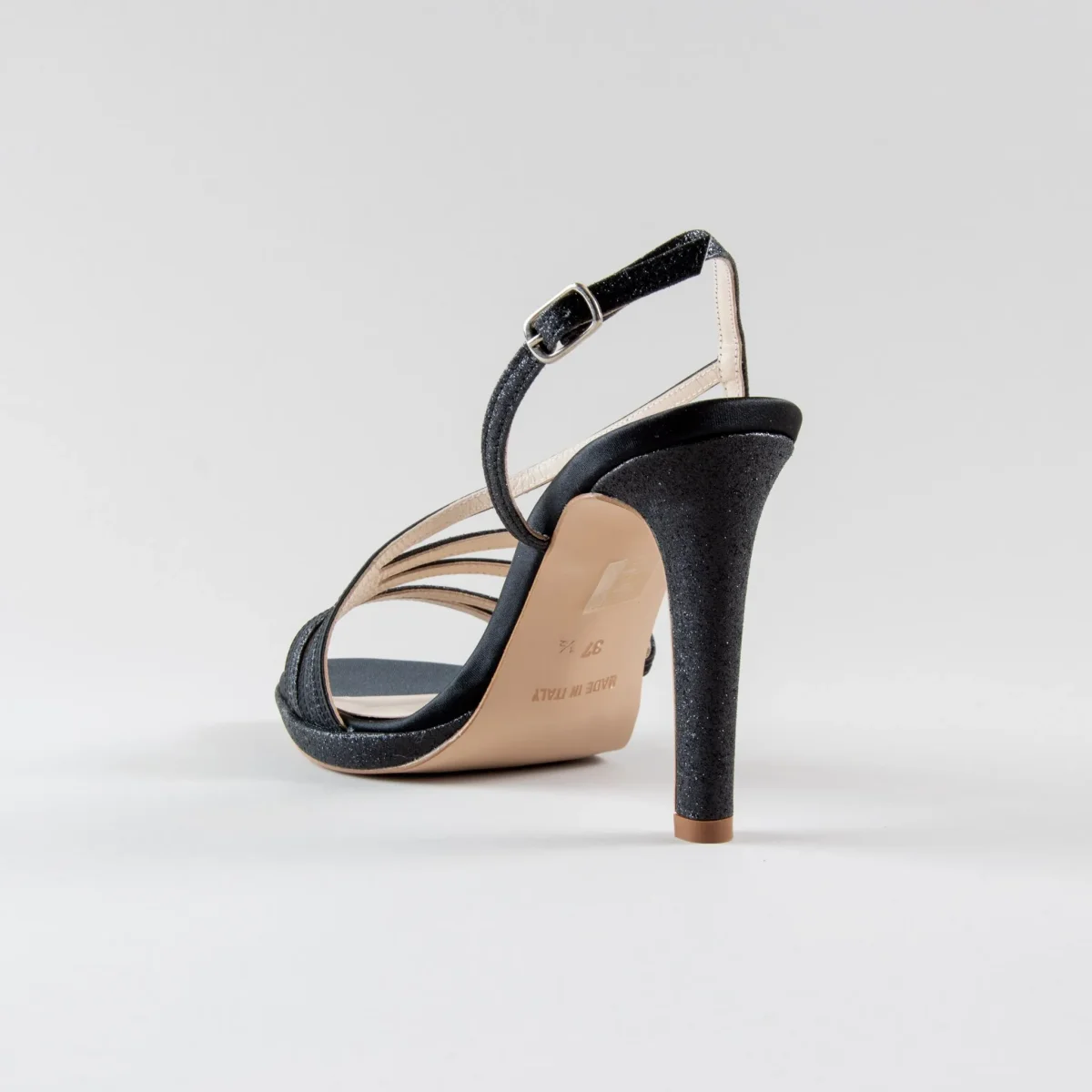 Sandalo Jasmine 100pl mm – Satin Nero e Glitter Nero