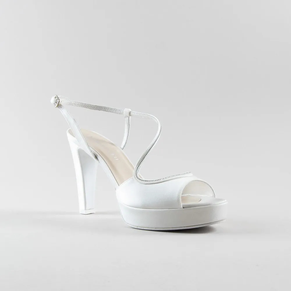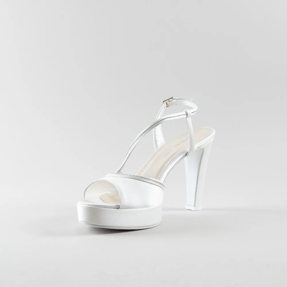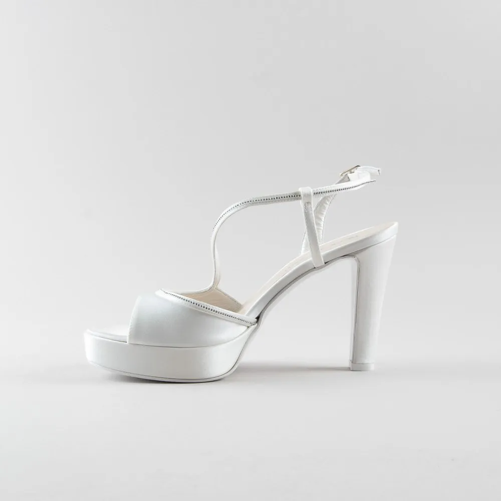 Sandalo Josette 100pl mm – Satin avorio e Swarovskii