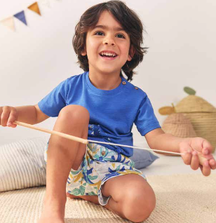 Un capo fresco e pratico per il rientro a scuola e le giornate piรน calde, pensato per accompagnare i piccoli nelle loro avventure quotidiane. Questi shorts, con bottoncini frontali e tasche sono speciali per la loro stampa vivace ispirata alla natura tropicale, e sono realizzati in cotone biologico certificato GOTS: delicato sulla pelle e rispettoso dellโambiente. I dettagli curati โ come le tasche e la vestibilitร comoda โ lo rendono ideale sia per il gioco che per i momenti del week end.