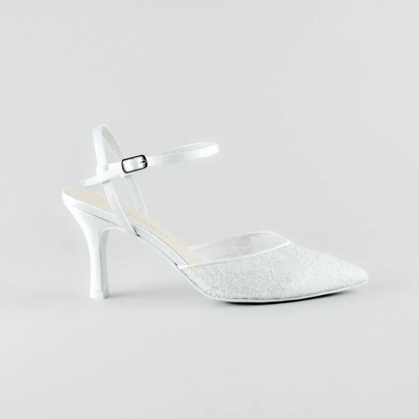 La Slingback Aurora è pensata per adattarsi a molteplici silhouettes e stili bridal.