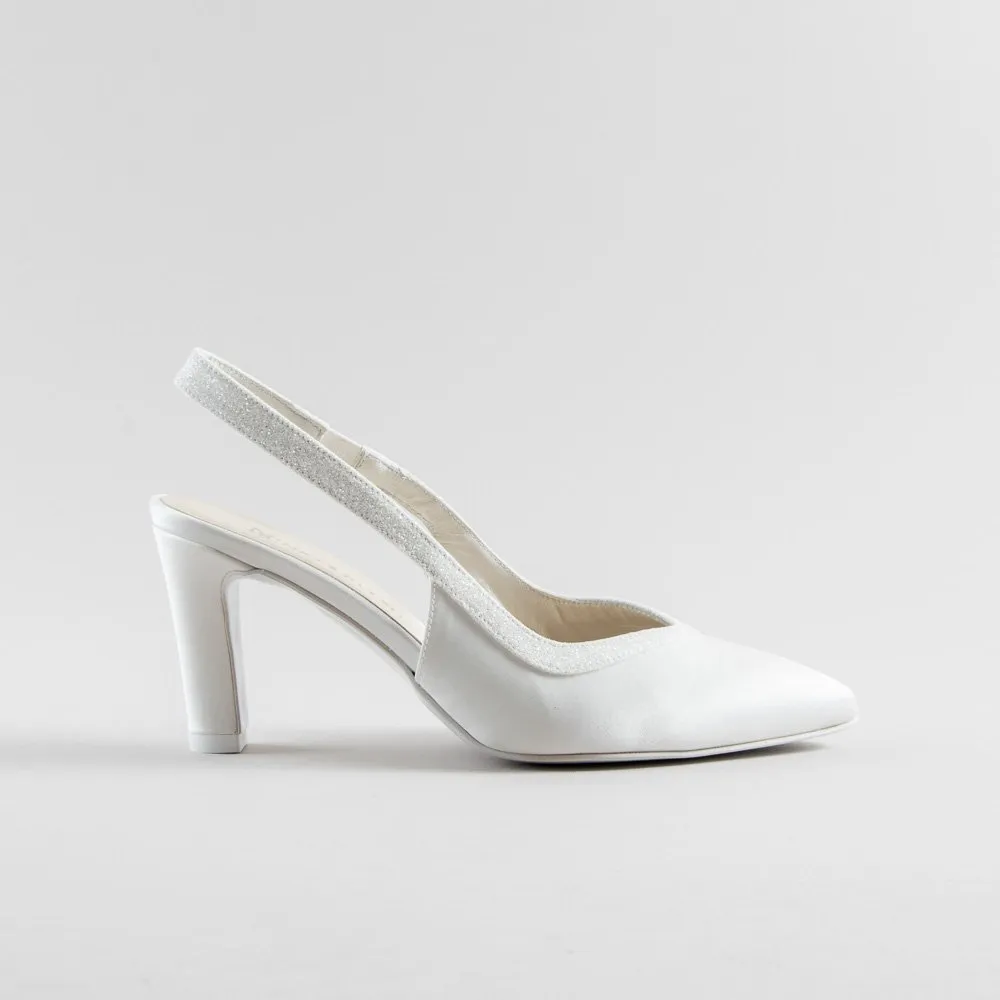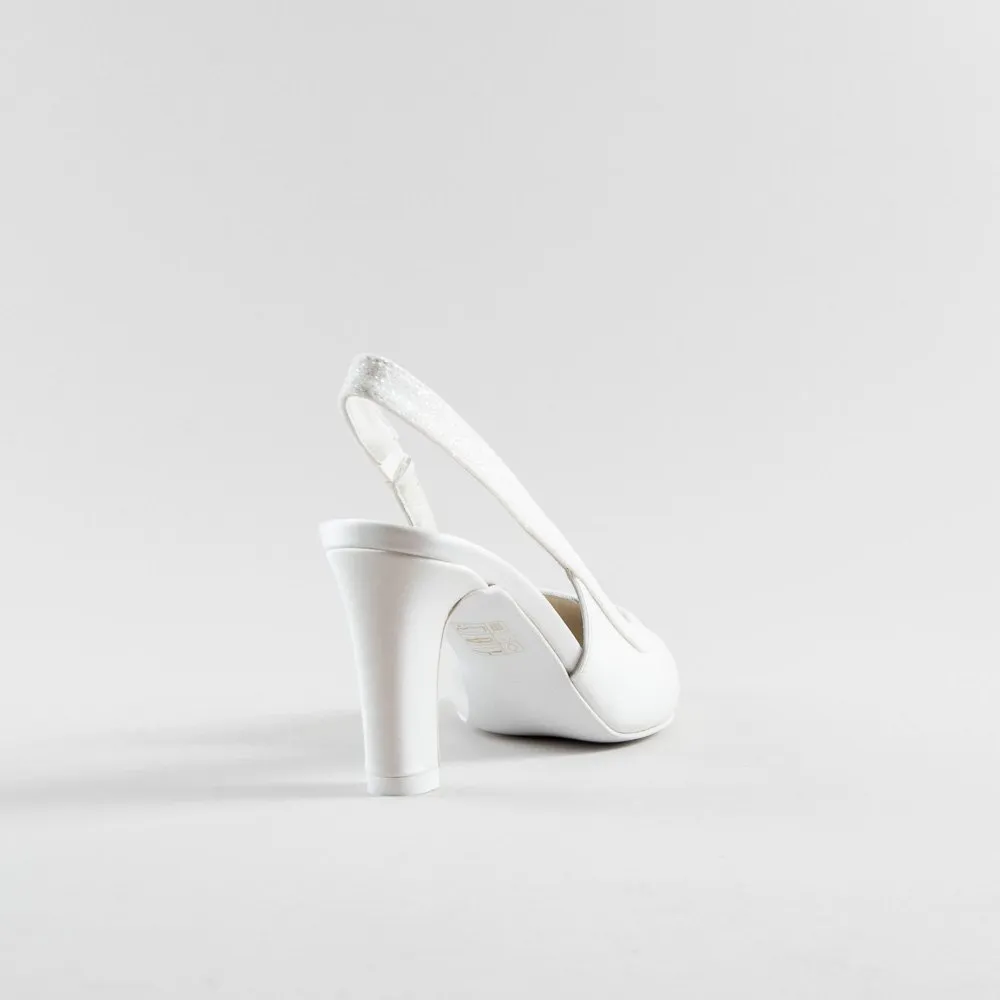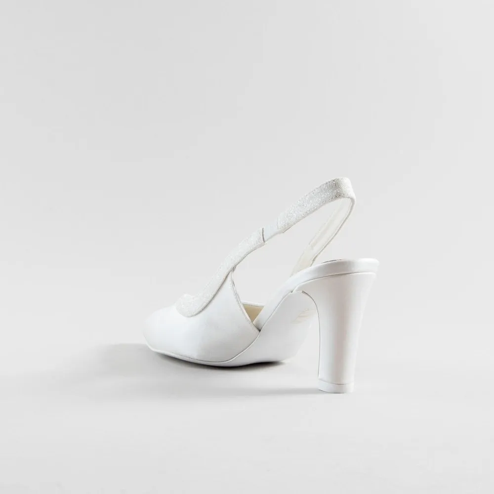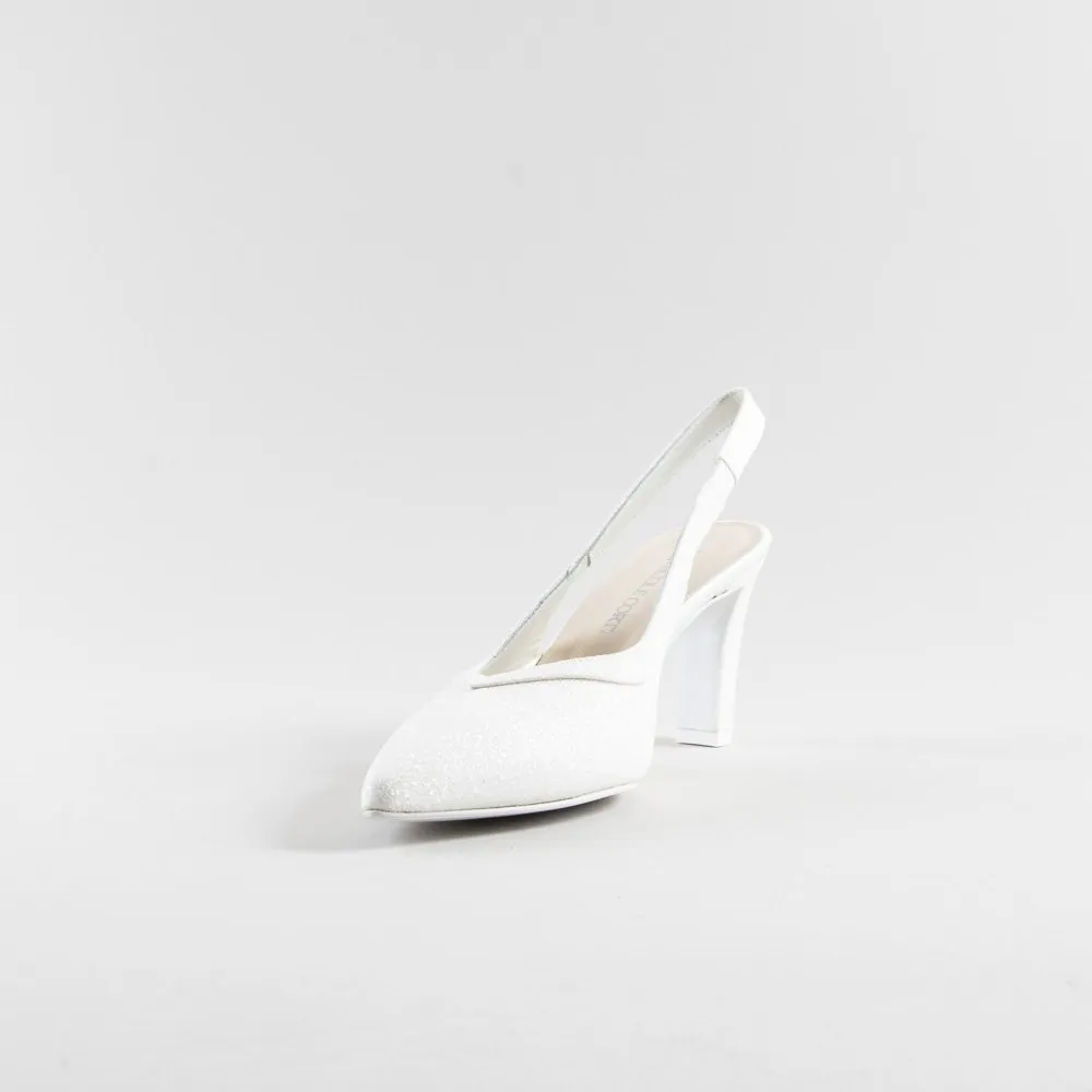 Il romantico scollo a cuore aggiunge un tocco di raffinatezza, mentre il design slingback garantisce una calzata comoda e sicura. Perfette per essere indossate durante tutta la giornata del matrimonio, le Slingback Diana sono anche facilmente riutilizzabili per altre occasioni speciali, rendendole una scelta pratica e sostenibile.