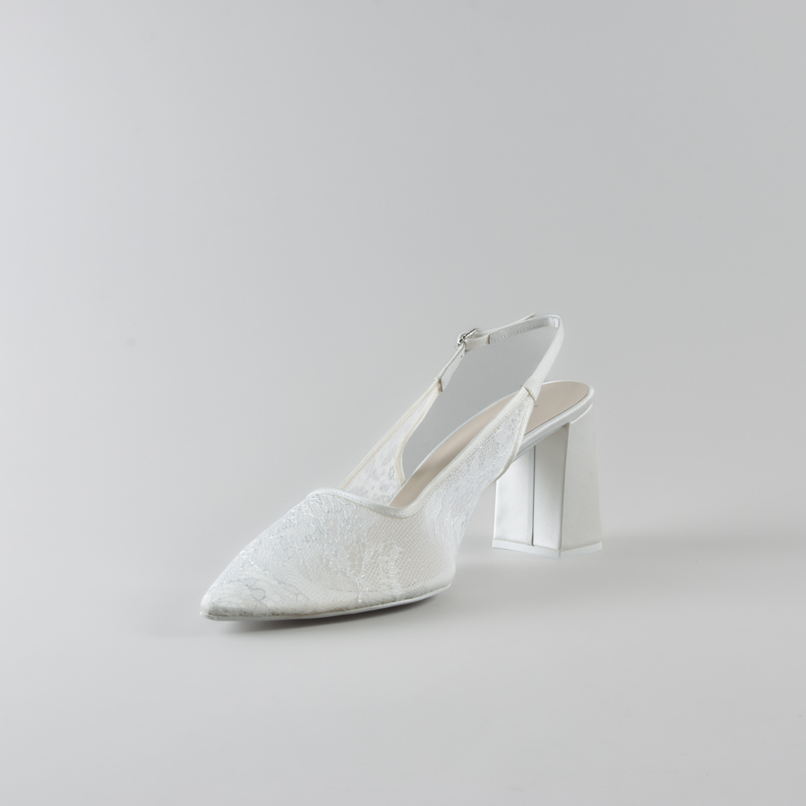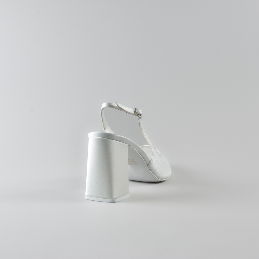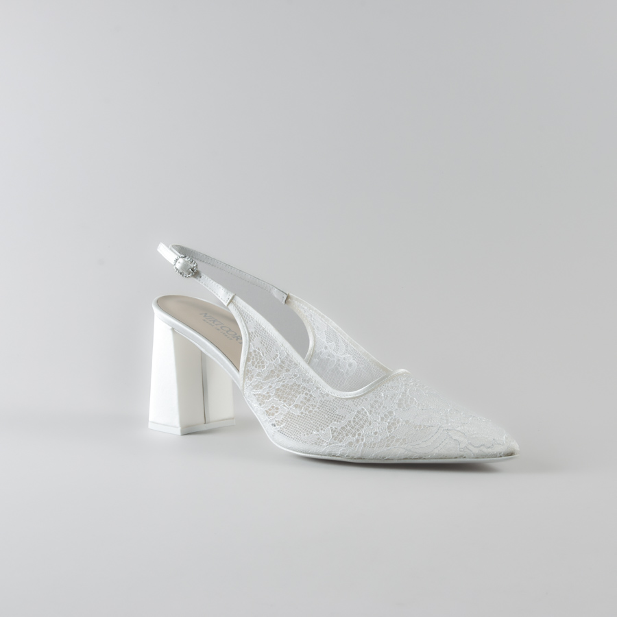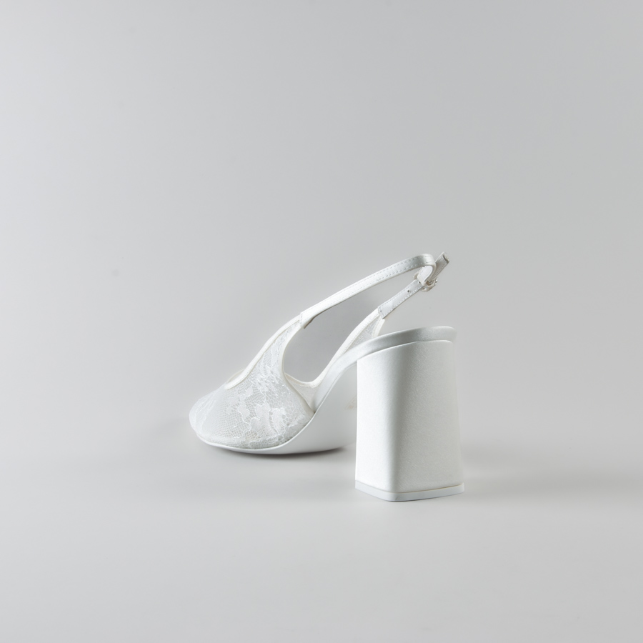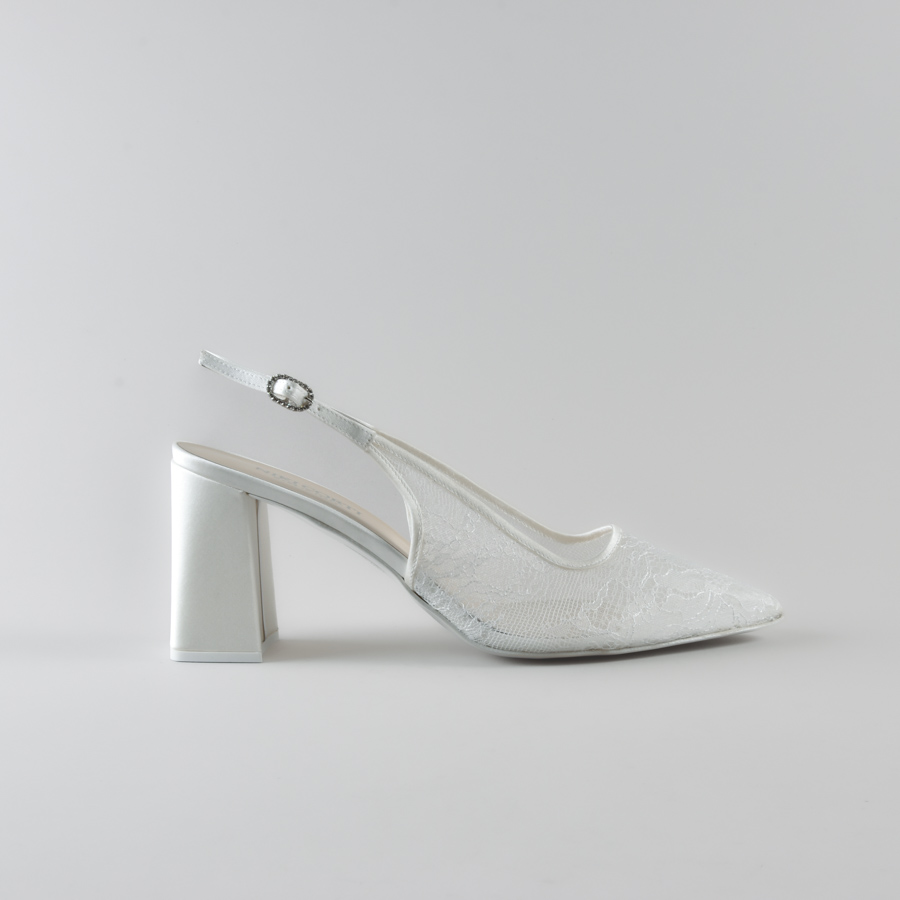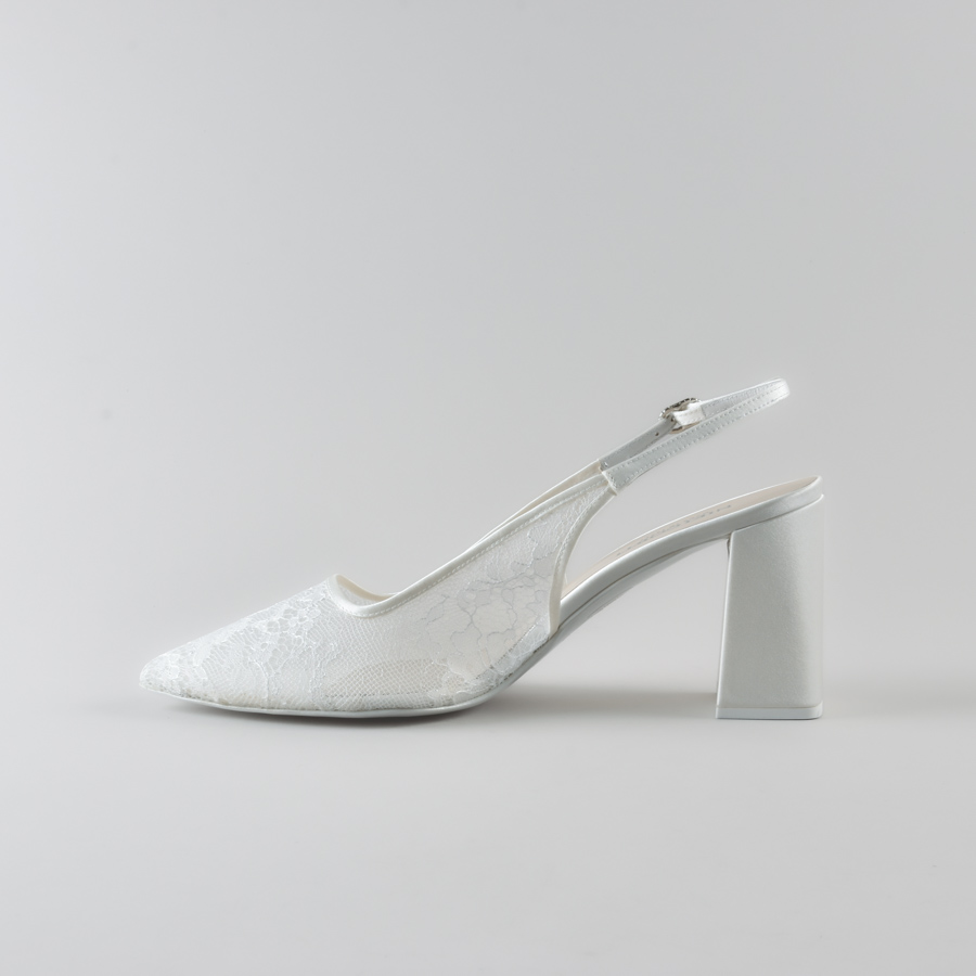 Slingback Marina di NIKI CORTI – Scarpe da sposa con Tacco Quadrato in Pizzo e Satin