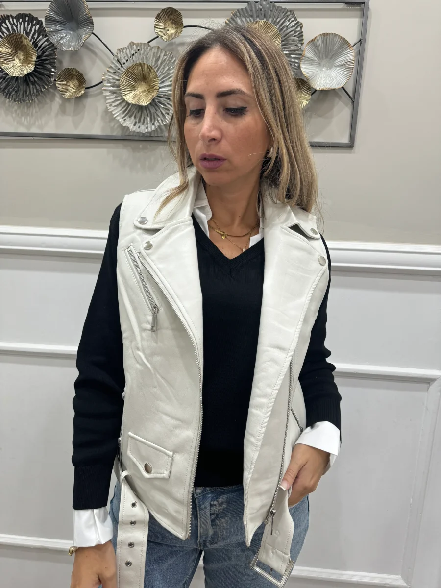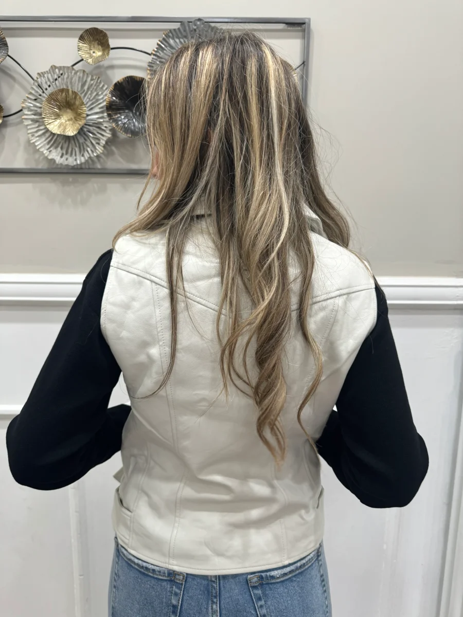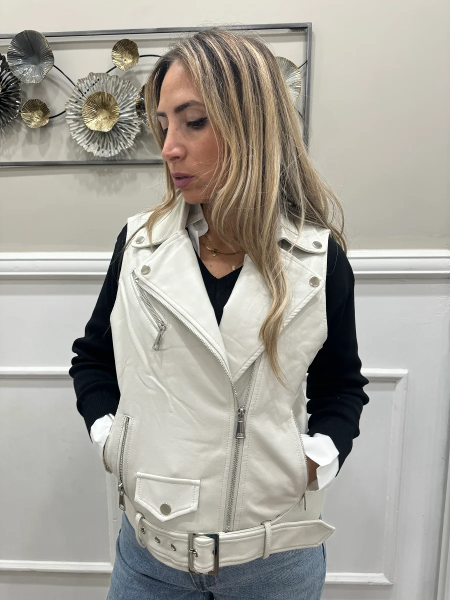 smanicato in ecopelle morbida vestibilitร regolare la modella indossa tg S