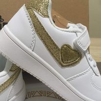 Sneakers bimba in simil pelle con lacci elastici e strappo, con decorazione laterale