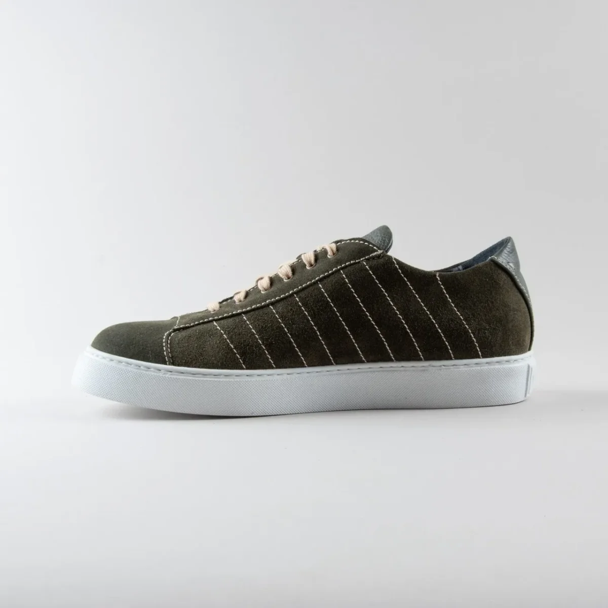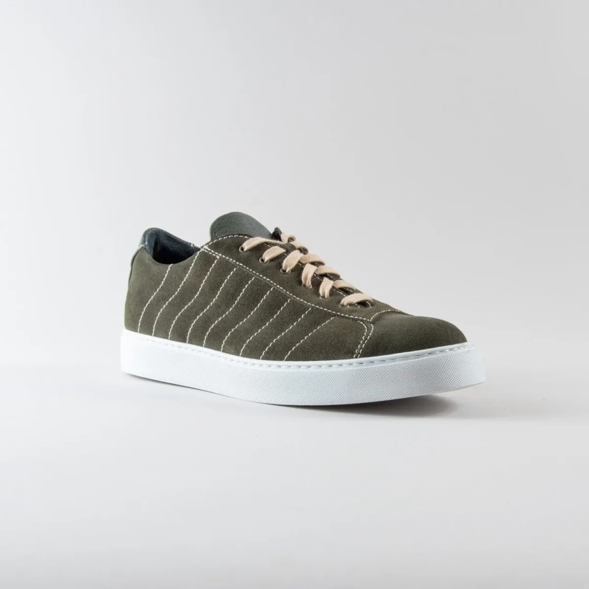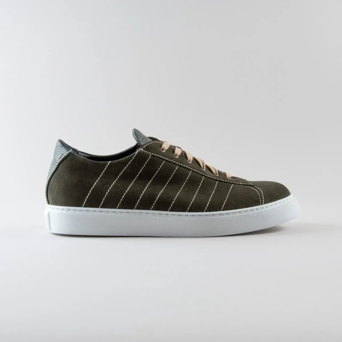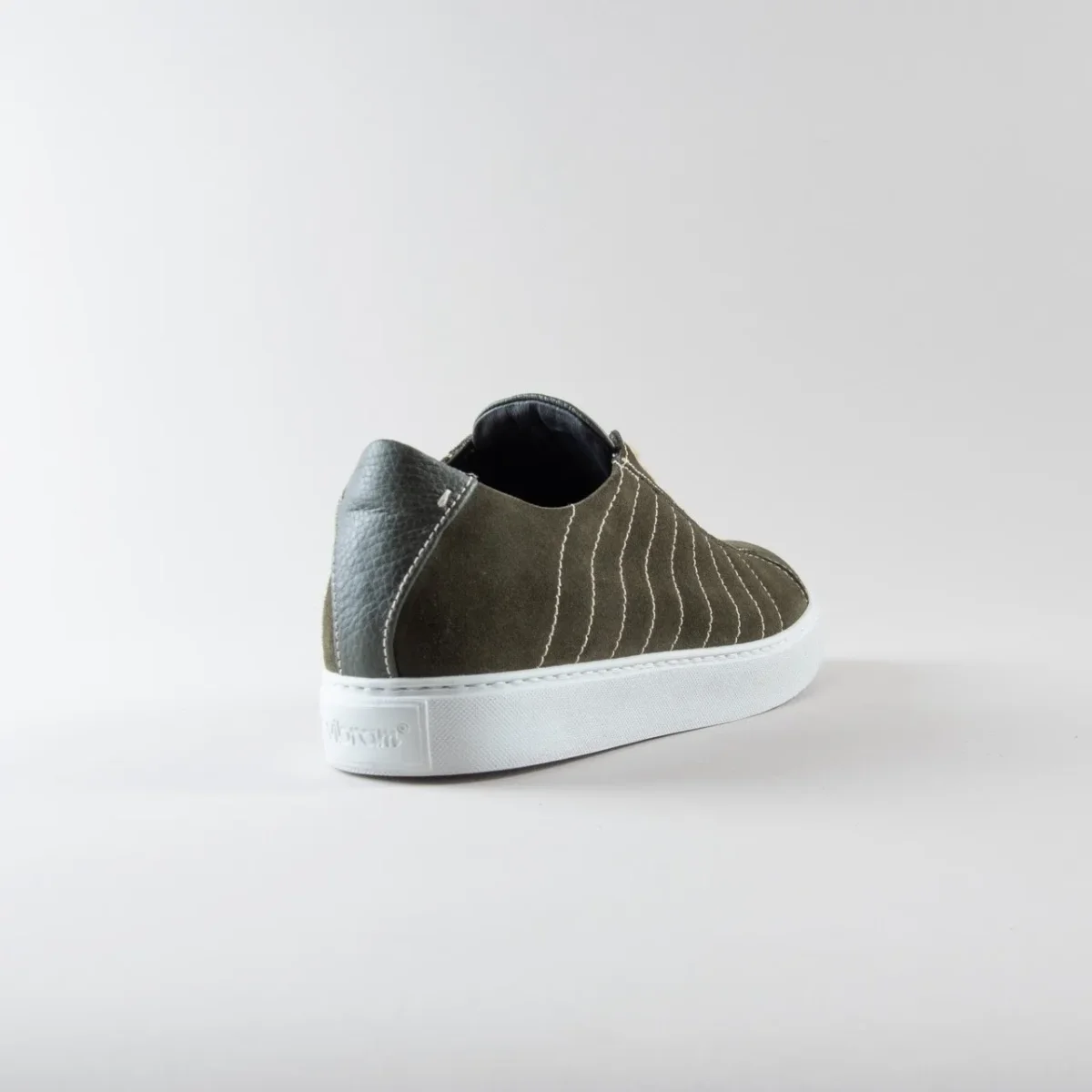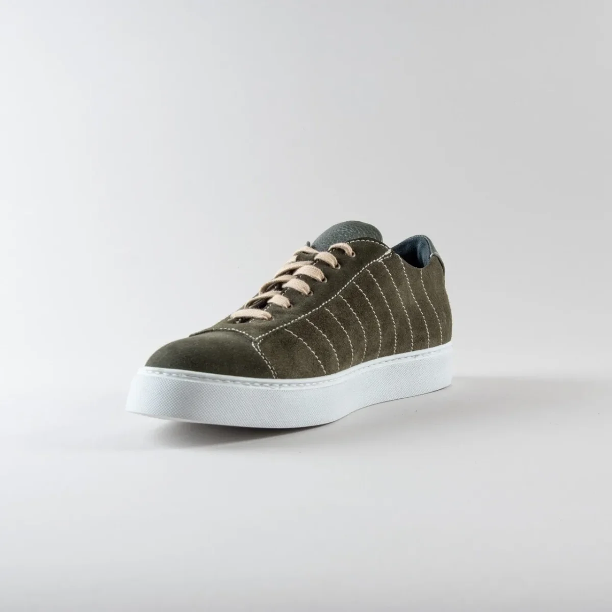 Le sneakers Davin in crosta e pelle loden con suola Vibram sono lโ€™accessorio perfetto per chi desidera unire eleganza e praticitร , ideali per aggiungere un tocco di stile a ogni outfit.