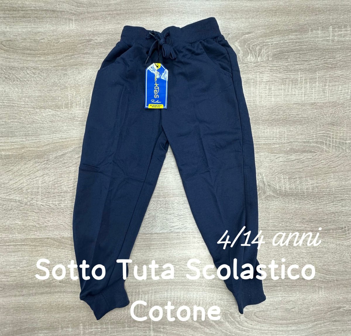 SOTTO TUTA SCOLASTICO IN COTONE CON ELASTICO IN VITA E COULISSE E POLSINO ALLA CAVIGLIA.