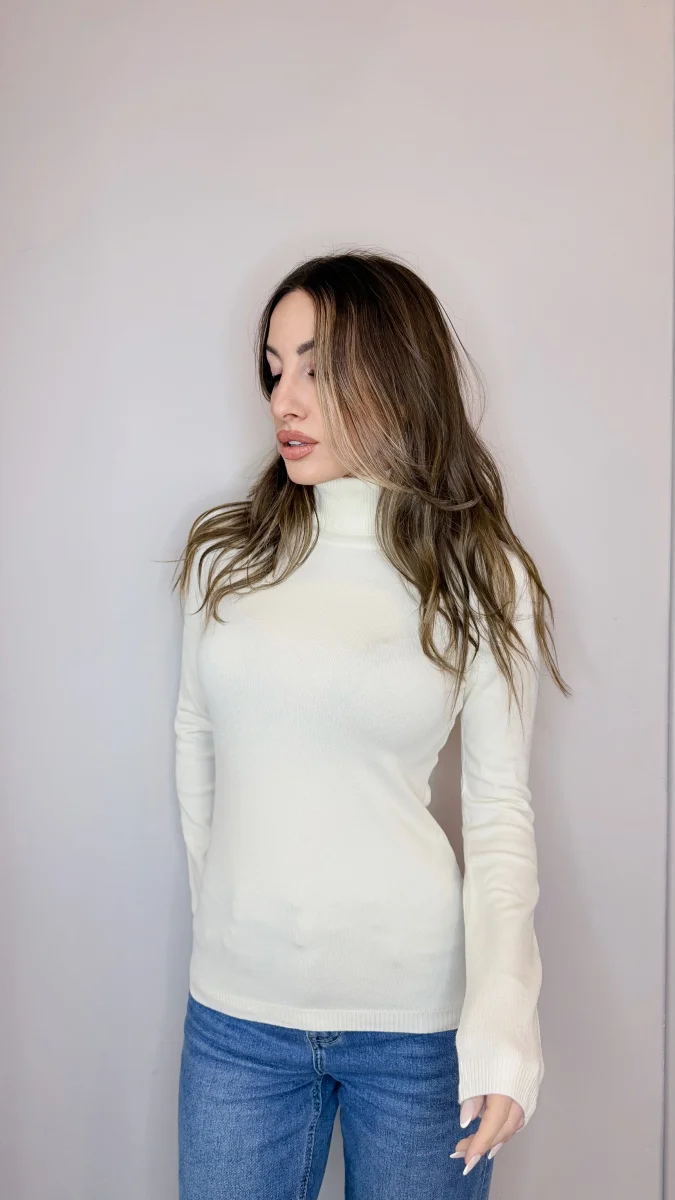 Il collo alto dona un tocco elegante e protegge dal freddo, rendendola perfetta sia per look quotidiani che per outfit piรน raffinati. Ideale da indossare da sola o sotto blazer, cardigan e cappotti.