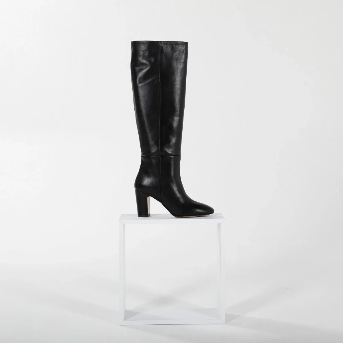 Il Stivale Aurora in pelle nera รจ la scelta ideale per chi cerca eleganza e praticitร in un unico modello. Questo stivale tubolare, realizzato in pelle liscia di alta qualitร , avvolge la gamba senza cuciture visibili, offrendo un look pulito e minimalista. Il tacco largo da 70 mm garantisce una stabilitร ottimale, perfetta per chi desidera una calzatura confortevole e slanciata allo stesso tempo. Il design tubolare, privo di zip, facilita la calzata mantenendo una silhouette essenziale e raffinata, adatta a ogni occasione, sia casual che formale.