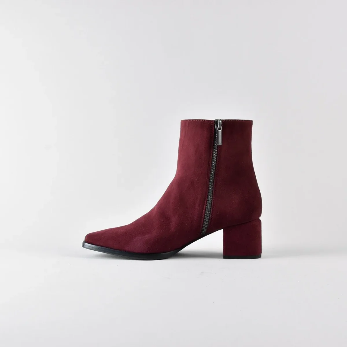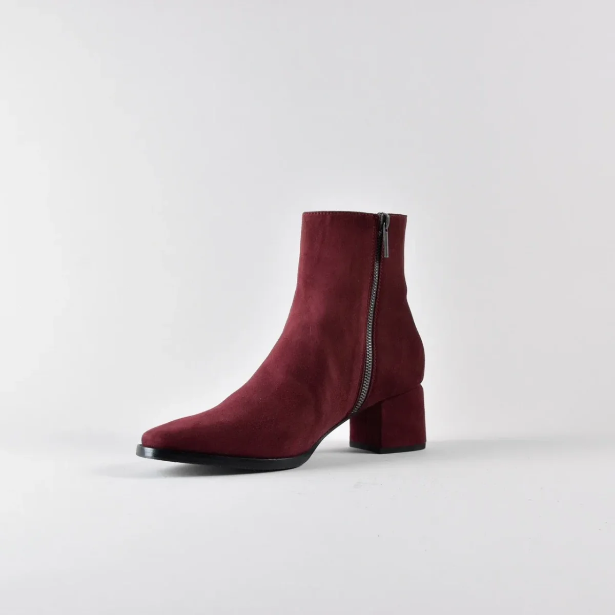 Il Stivaletto Brigitte in camoscio bordeaux รจ la scelta ideale per chi desidera una calzatura versatile, comoda e di classe, capace di aggiungere un tocco di stile unico a qualsiasi outfit.