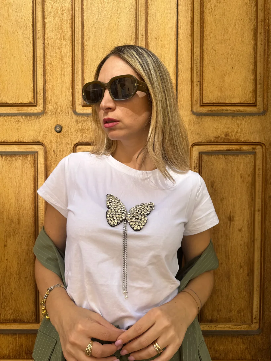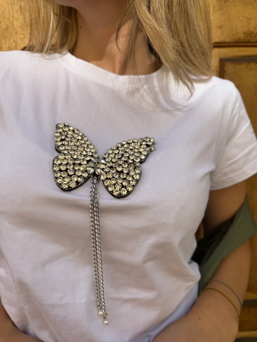 t shirt in cotone applicazione di pietre luminose lunghezza basic 95 % COTONE 5 % ELASTENE