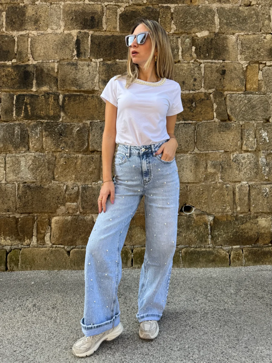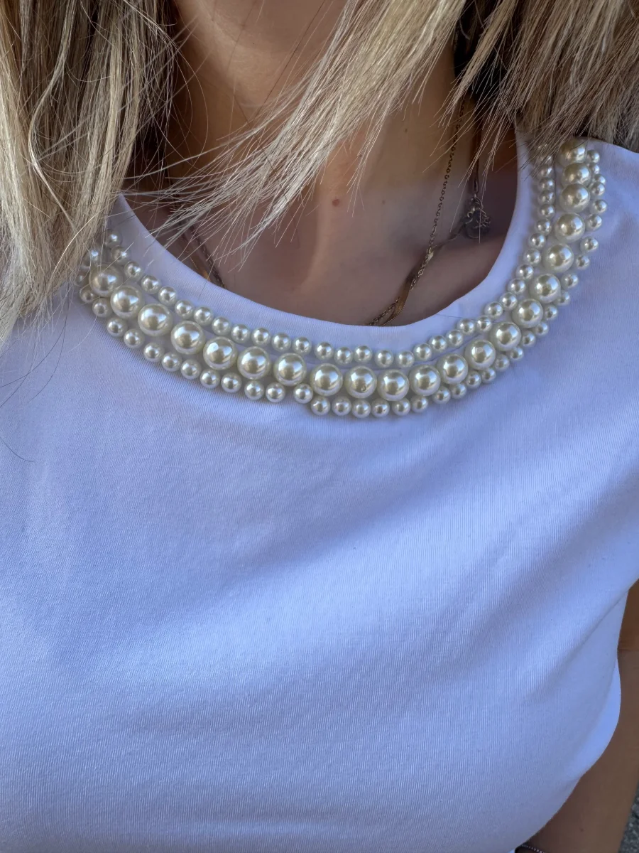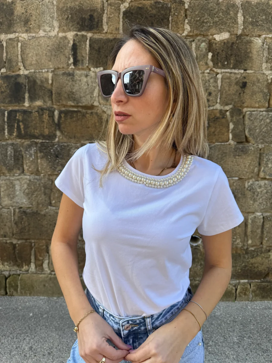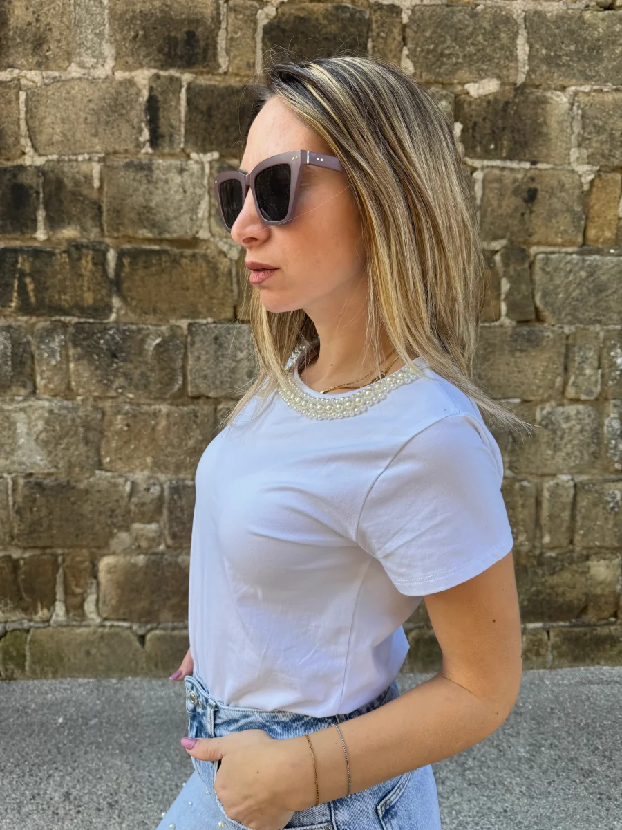 T SHIRT GIROCOLLO PERLINE