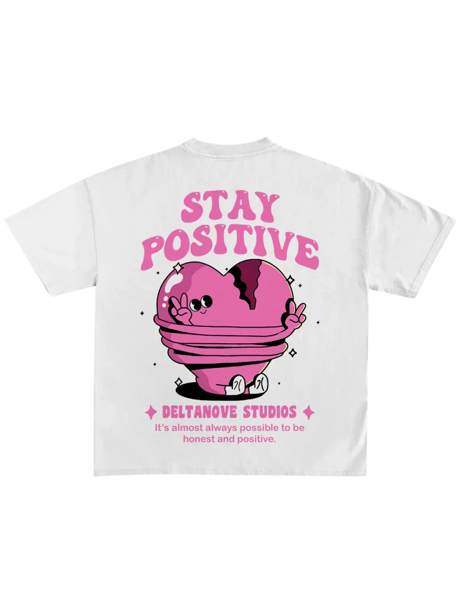 T-SHIRT “STAY POSITIVE” CON STAMPA FRONTE/RETRO – Col. Bianco