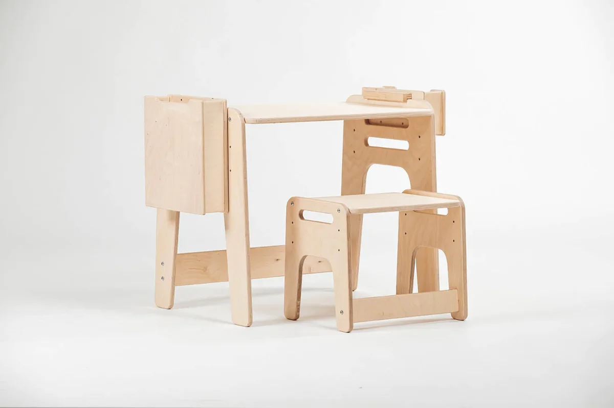 MULTIFUNZIONALE e REGOLABILE in tre altezze secondo la normativa di arredo scolastico UNI1729-1:2006 in modo da accompagnare la crescita del bambino.