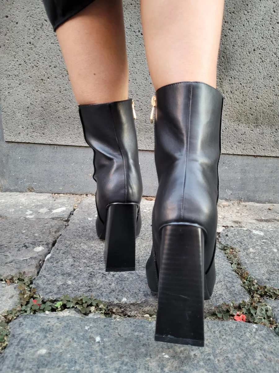tronchetti in ecopelle con cerniera laterale tacco largo 10,5 cm
