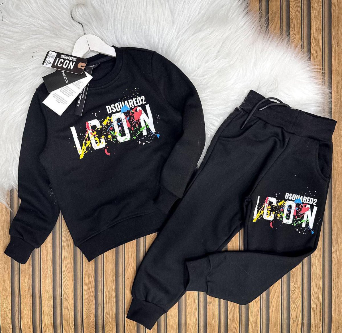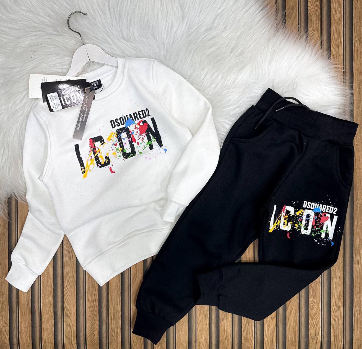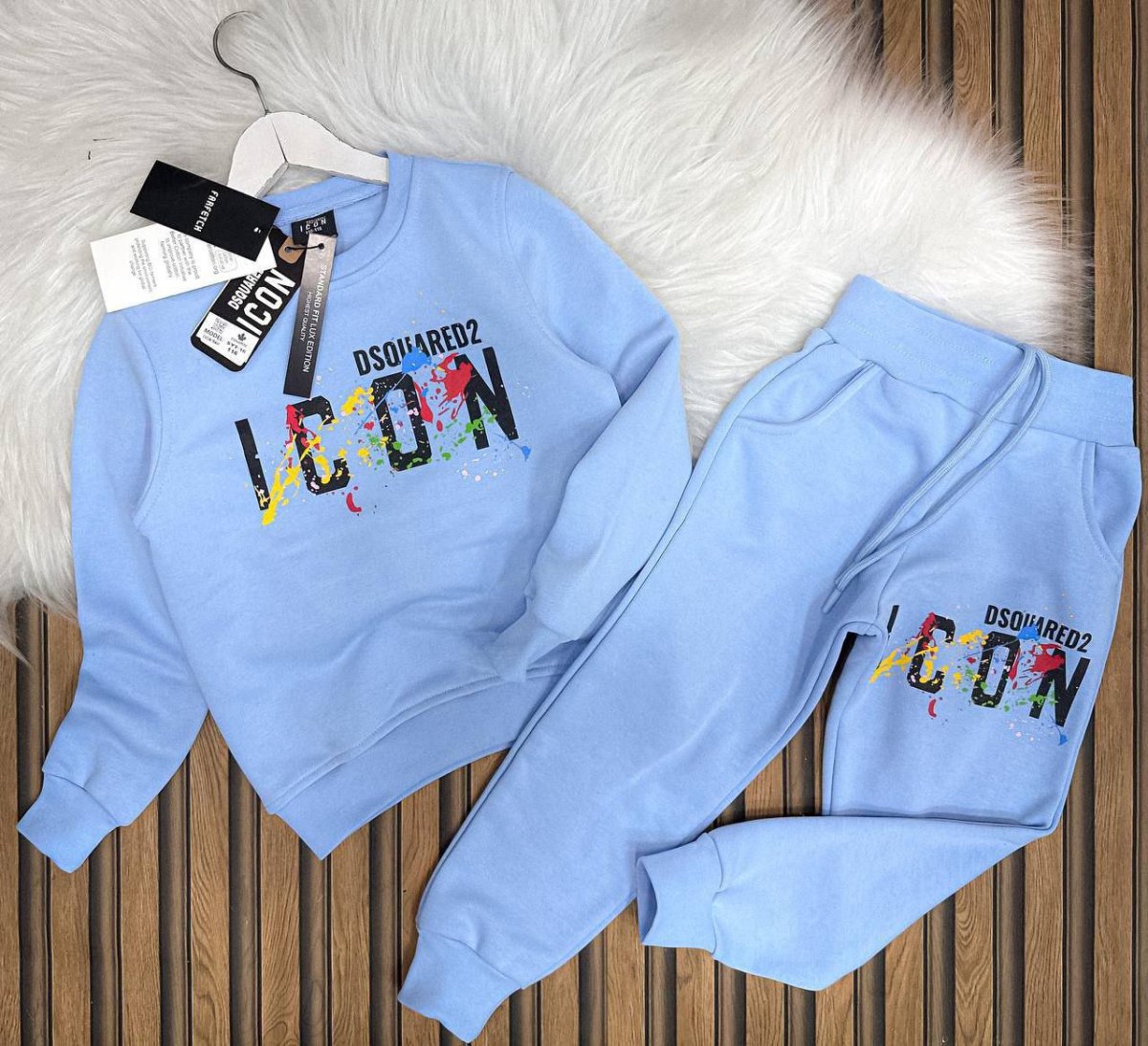 Tuta felpata per bambini e ragazzi, composta da due pezzi: pantatuta con coulisse ed elastico in vita e nelle caviglie; felpa con stampa sul davanti. Disponibile in tre varianti dii colore.
