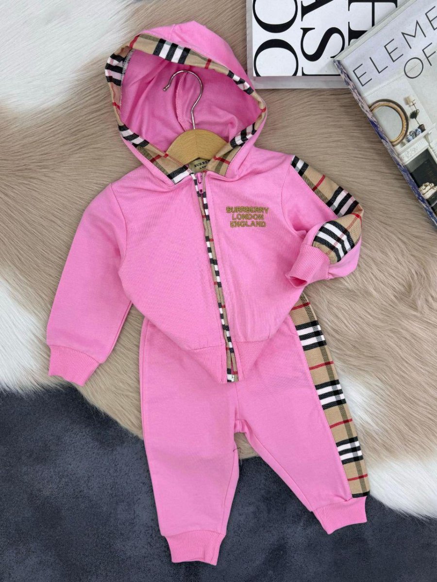 Tuta felpata per bimbi, composta da due pezzi: pantatuta con elastico in vita e alla caviglia felpa con cappuccio e cerniera, elastico nei polsini. Disponibile in tre varianti di colore.