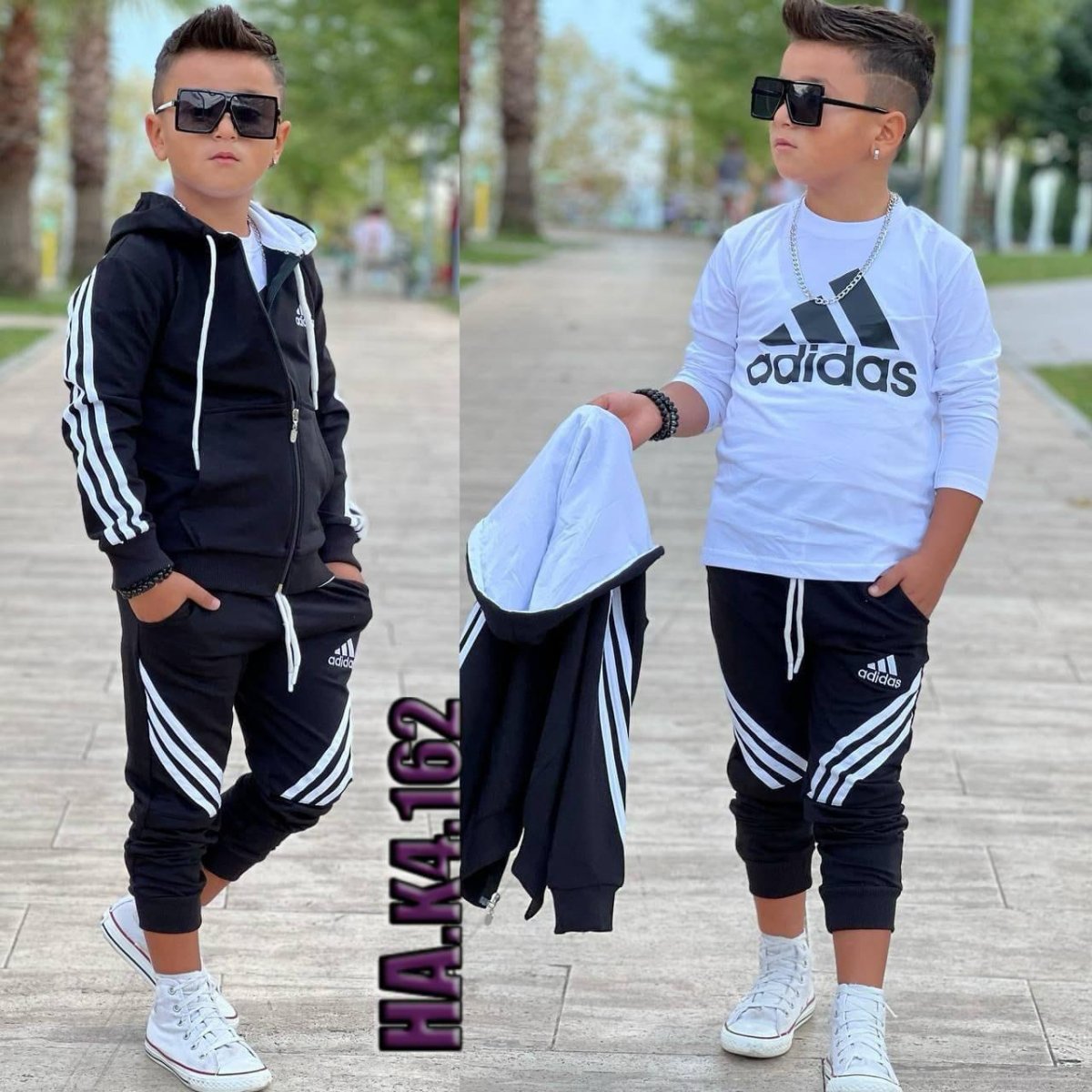 Tuta felpata bimbo composta da tre pezzi: Pantatutaย con coulisse regolabile ed elastico in vita e nelle caviglie; maglietta manica lunga in cotone con stampa sul davanti; felpa con cerniera e cappuccio. Disponibile in quattro colorazioni.