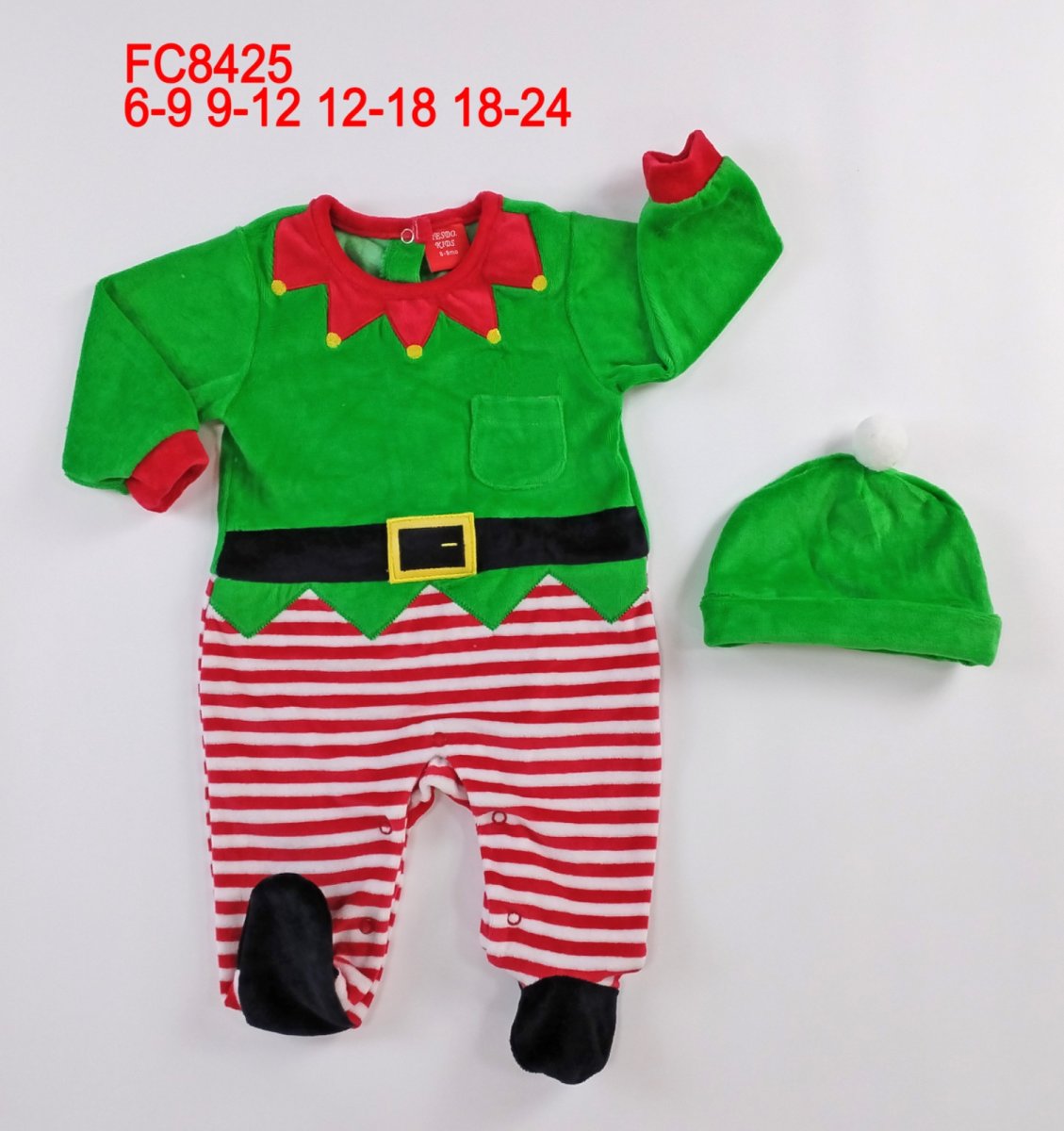 Tutina da elfo in ciniglia con cappello in coordinato.