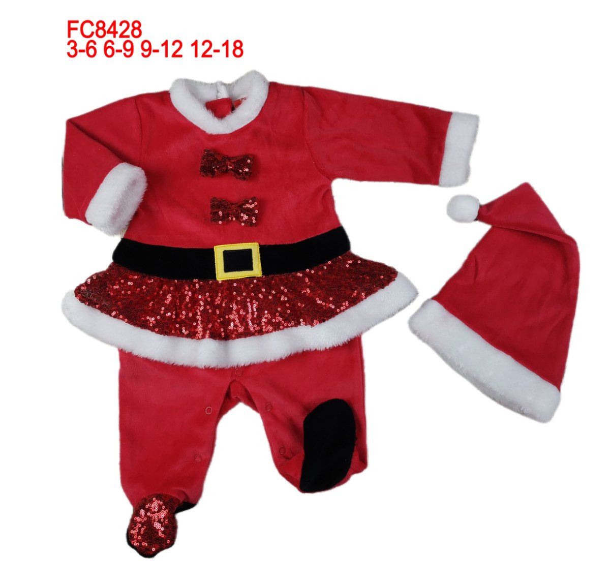 Tutina in ciniglia natalizia per neonata con cappello in coordinato.