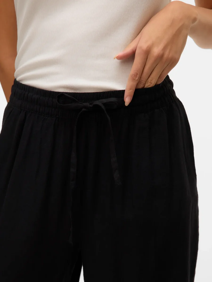 VERO MODA Wide leg Pantaloni in Lino – col. Nero