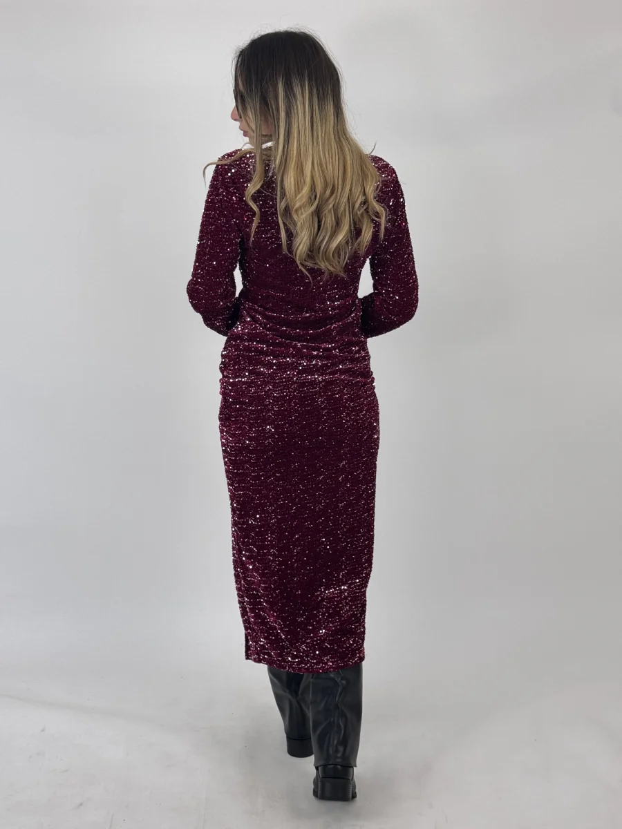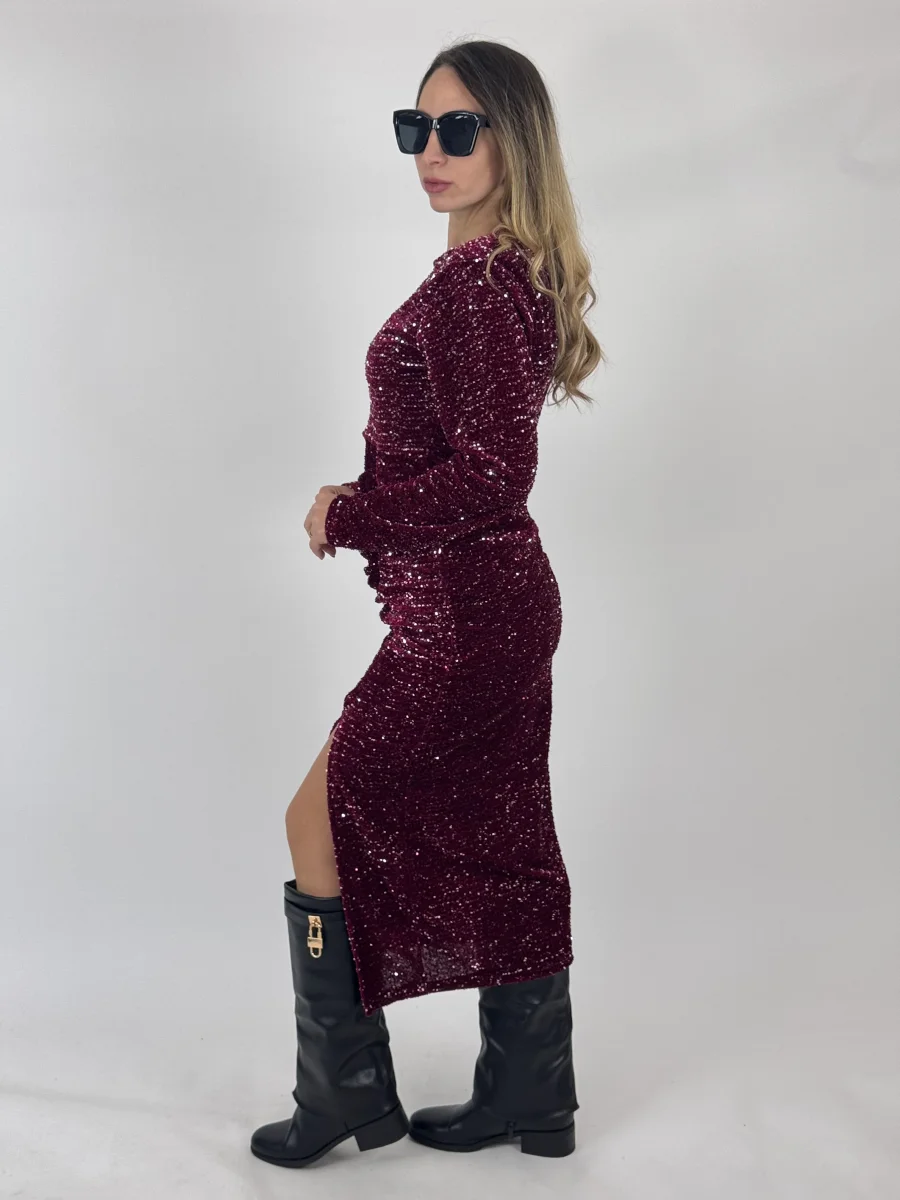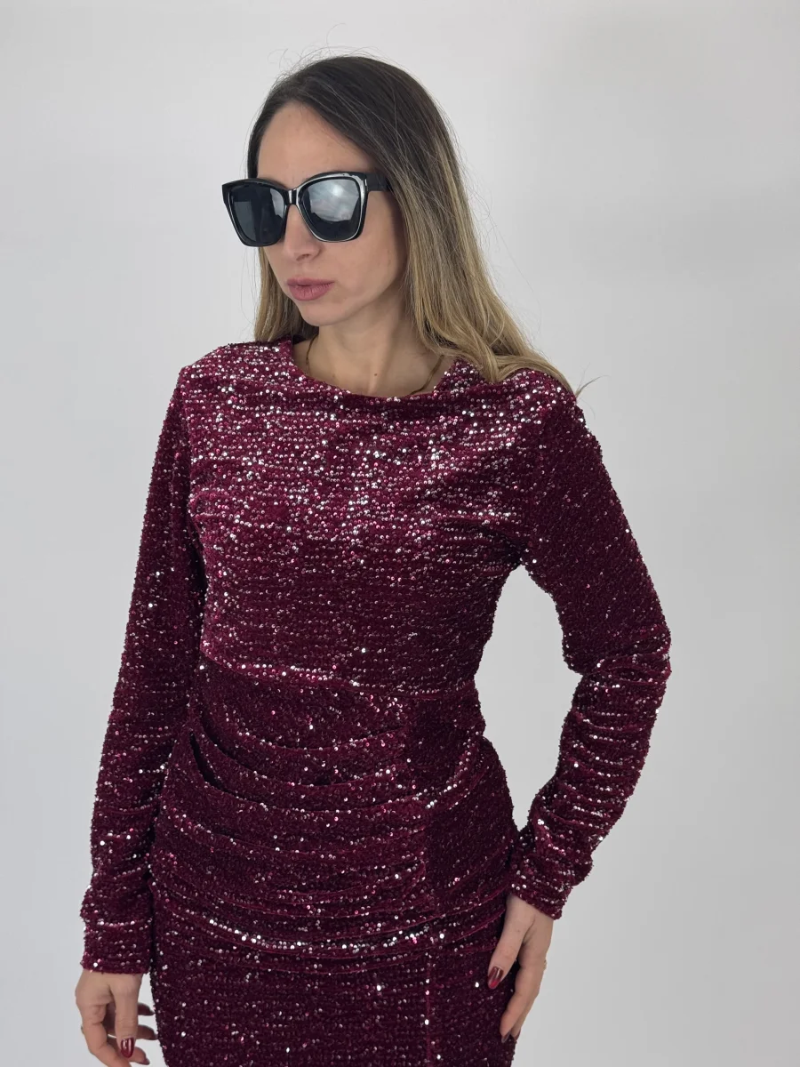 Vestito con applicazione di paillettes, con dettaglio di drappeggio sul lato