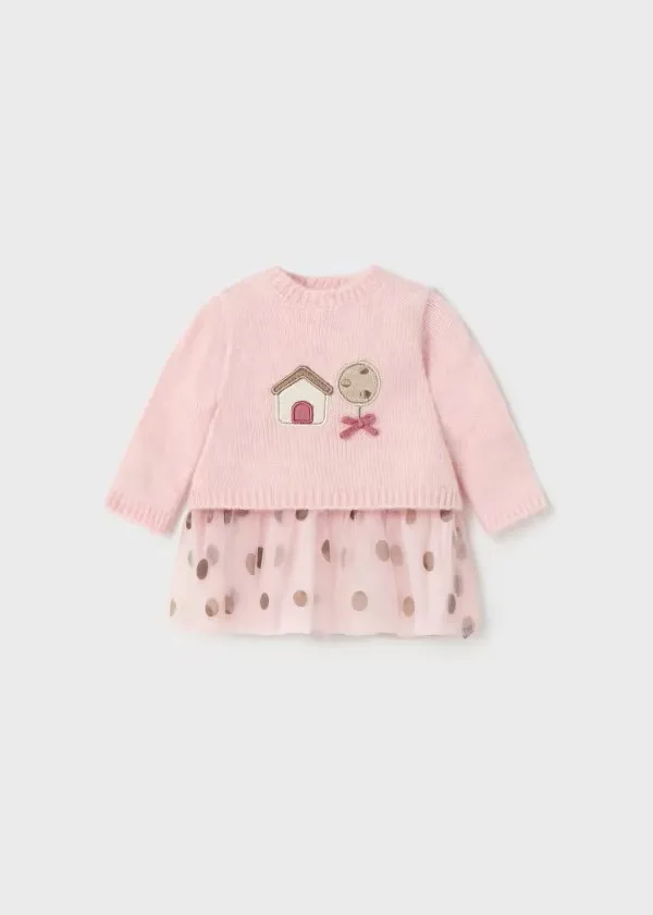 Vestito combined tricot e tulle neonata mayoral art. 13-02865-039
