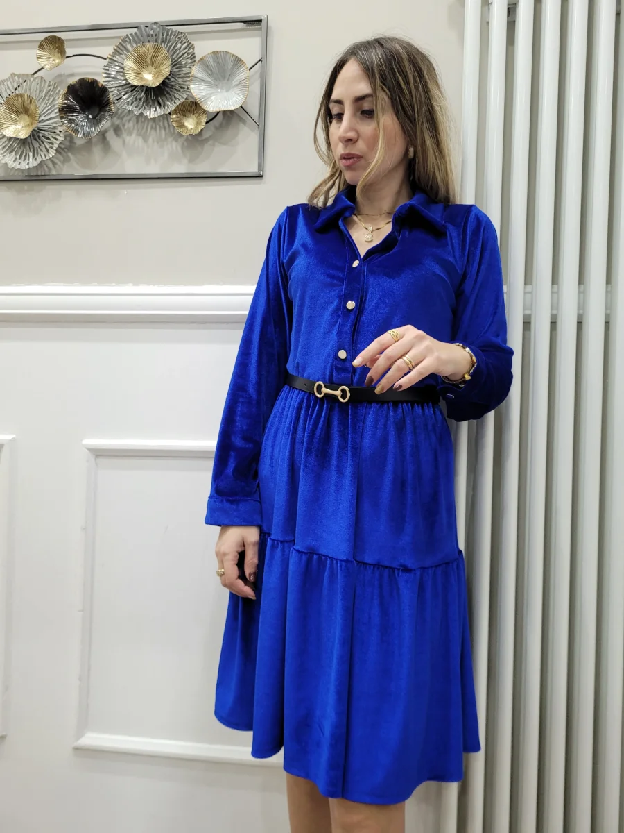 vestitino in ciniglia con bottoncini oro lucido apribili cinturino incluso tg unica da XS a L