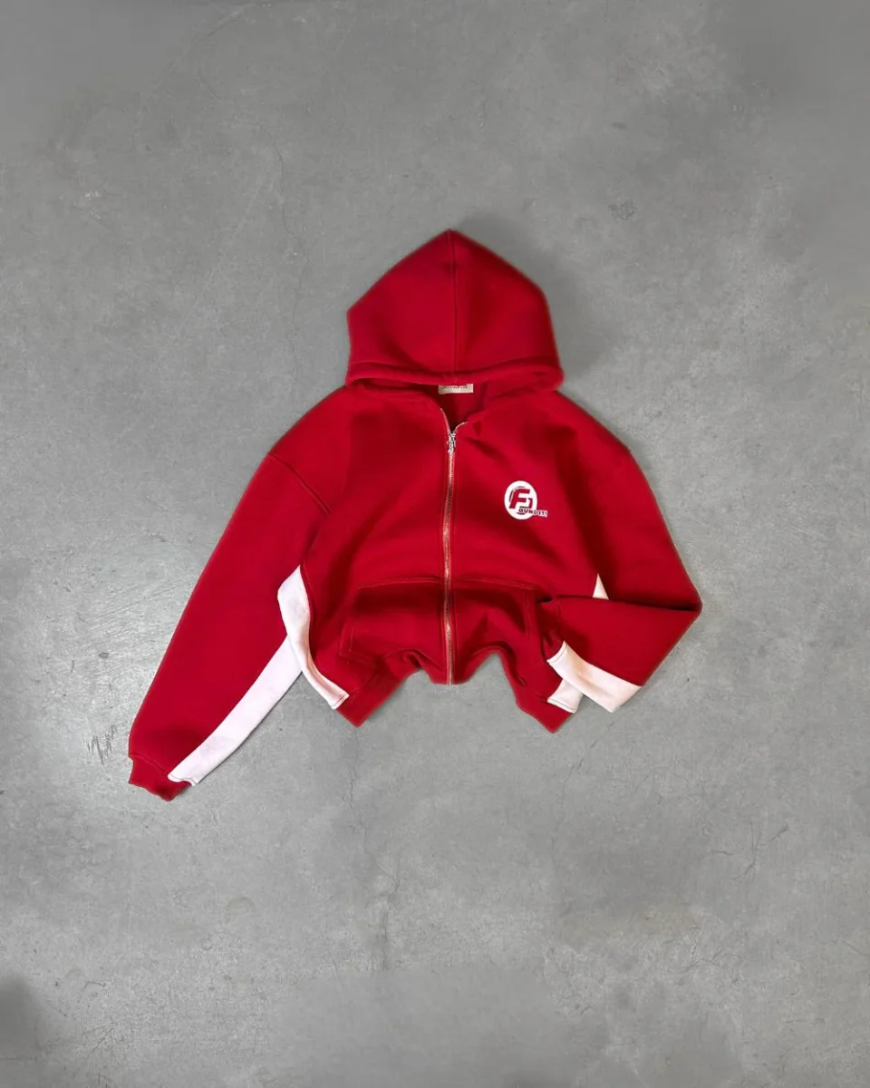 -Cropped fit -Unisex -Screen print -Zip with custom logo -Made in italy Female model: 168cm-58kg, size S Male model: 173cm-71kg, size M
